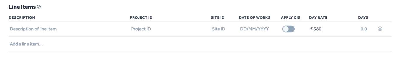 - If applicable, use the Apply CIS toggle switch to apply a CIS deduction from each Line Item.