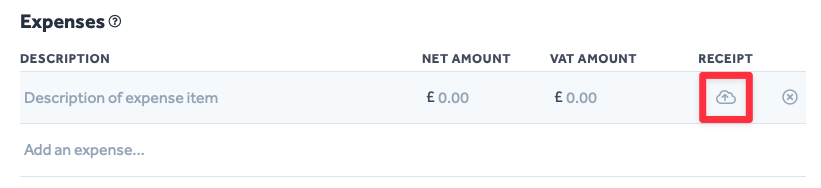 - You can add a copy of relevant receipts by clicking the cloud icon.