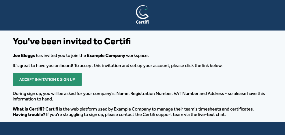 - After a Supervisor has invited you to join Certifi, you will be sent an automatic invitation email.