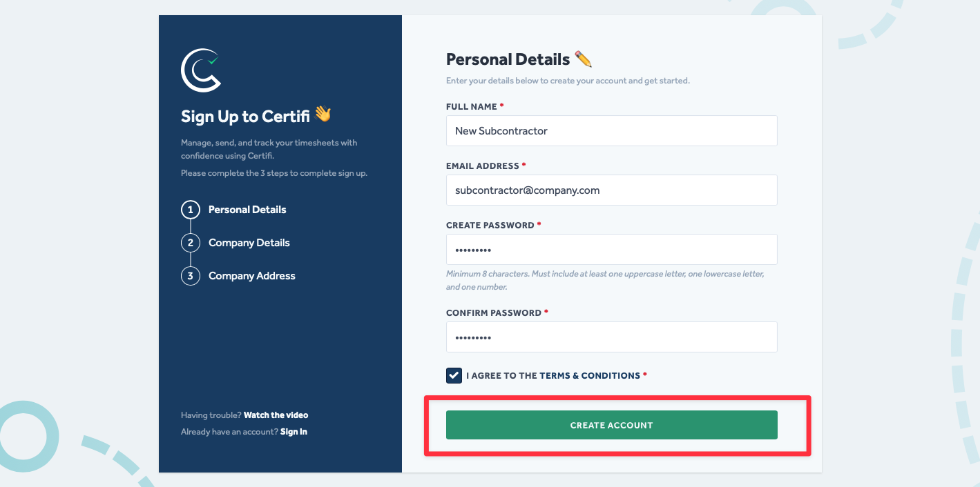 - You will then be redirected to Certifi, where you must input your details and create a strong password.