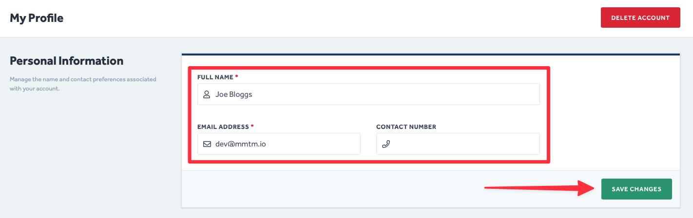 - Simply amend the information in the fields within the Personal Information section.