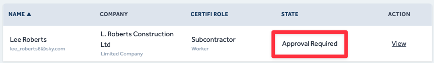 - The user has accepted their invitation and filled out their information to create an account. A Supervisor must now approve or reject their profile.