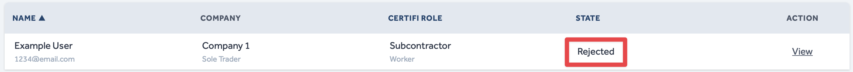 - If the user's profile has errors, a Supervisor can change their state to Rejected. Users flagged as Rejected can log in and see their Edit Account Details page only.