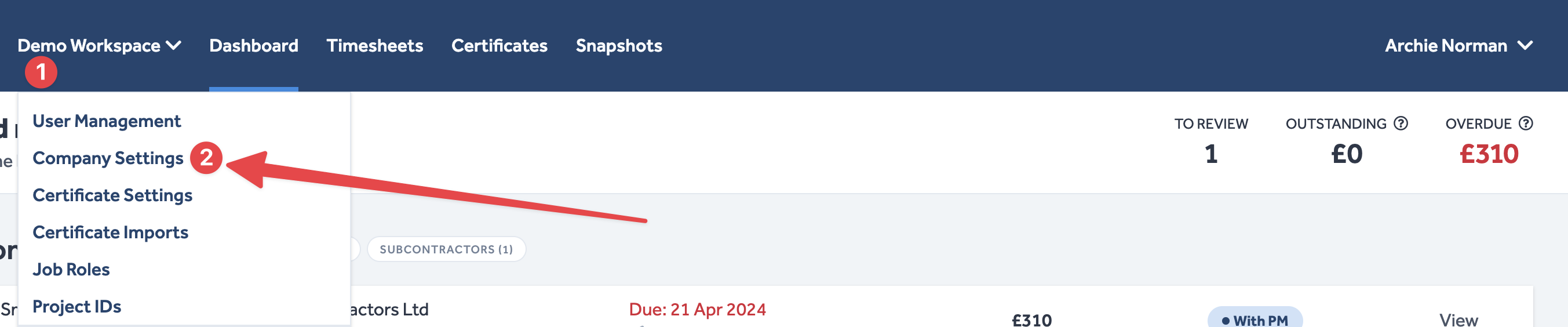 - Scroll down to Certifi Integrations at the bottom of the Company Settings page