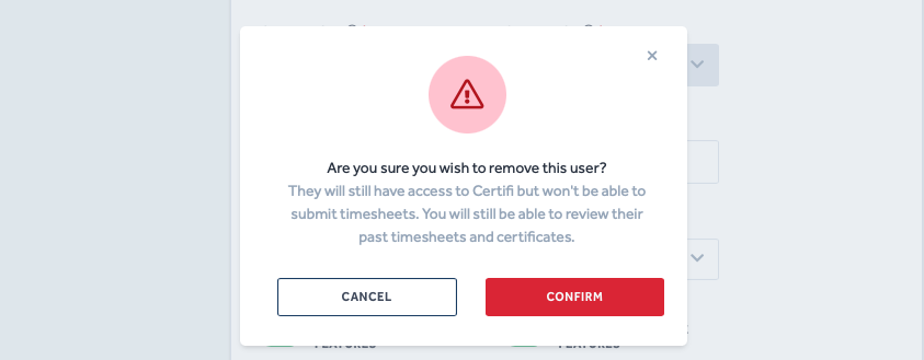 - If you are happy to remove the user, click Confirm in the pop-up window.
